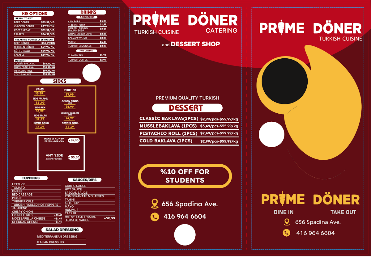 Introducing Prime Doner Shawarma & Dessert, a culinary gem located at 656 Spadina Ave., Toronto. This vibrant eatery specializes in Turkish street food, particularly doner shawarma, and offers a delightful array of desserts.